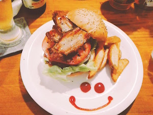 国際通りの路地裏にあるお店。バンズはどちらかと言うとさっくり系でカラッとした沖縄の雰囲気にもマッチしています。
